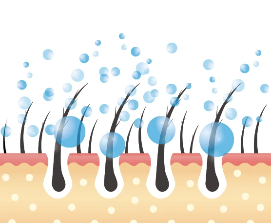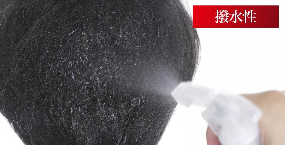撥水性シリコーンと特殊な樹脂の力で、自毛の一本一本にしっかり定着。雨・風・汗にも強いので1日中安心です。
